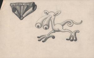 (305) untitled [sketch, creature with long protruding eye stalks, two legs and a curly tail]