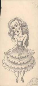 (306) untitled [sketch, woman wearing ruffled skirt]