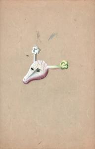 (316) untitled [sketch, cow skull-like head with flowers for horns]