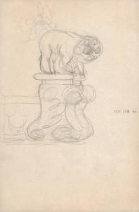 (320) untitled [sketch, creature crouched on all fours on top of pedestal]