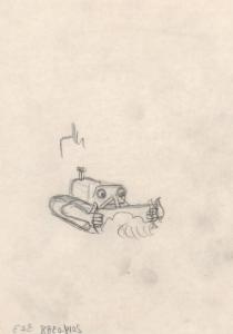 (323) untitled [sketch, bull dozer/plow with eyes and hands]