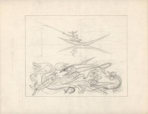 (337) untitled [sketch, fish and fisherman in boat; verso, circles]