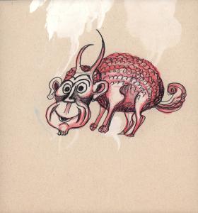(339) untitled [sketch, horned critter with humanoid face and pig-like body]