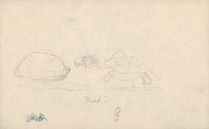 (179) untitled [sketch, two head studies, one with arm for nose; verso sketch of a hand with a face]