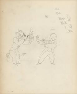 untitled [sketch, devil tempting the angel with bottle of wine]