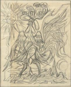untitled [sketch rooster, sun and moon]