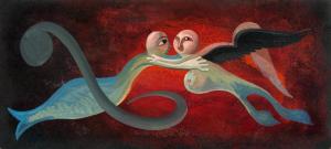 untitled [two creatures fish/human male and a bird/female embracing]