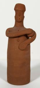 [Votive figurine with conical-shaped body, holding a ball]