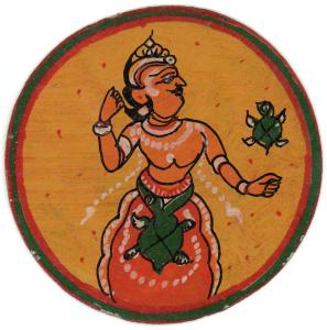 [Hindu Dashavatara Ganjifa playing card, Kurma, Turtle suit, court card, mantrî (minister)]