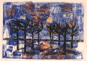 [Purple and blue landscape with trees]