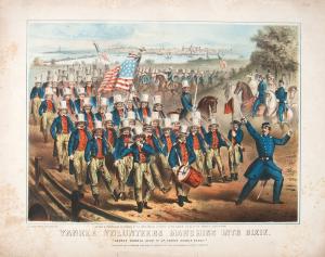 Skip to main content Collections MenuExpandMy CollectionDownload 300 x 300 (Download)View PDFYankee Volunteer’s Marching Into DixiePreviousNext 300 x 300 (Download)Yankee Volunteer’s Marching Into DixieArtist Winslow Homer (American, 1836 - 1910)Date1862ClassificationsPrintMediumColor lithographDimensions9 × 12 3/16 in.Credit LineGift of Cleota and David TathamKeyword/SubjectmilitarywarcivilUnitedStateshistoryObject number2016.0262 Discover More General Thomas Swearing in the Volunteers, Called into the Service of the U S at Washington, D.C.Winslow Homer1861The War Making Havelocks for the Volunteers, 6/29/1861Winslow Homer1861Winter Quarters of the 3rd Battery, Martin’s Massachusetts Volunteers, Near Potomac Creek, VirginiaJohn Henry Bufford1863Timber Slide On Hull Side, Ottawa City, Canada, after William S. HunterWinslow Homer1855 - 1856A Portion of Chaudiere Falls, Ottawa River, Canada, after William S. HunterWinslow Homer1855 - 1856The WreathWinslow Homerno dateMinnie Clyde, Kitty Clyde’s SisterWinslow Homer1857The Ratcatcher’s DaughterWinslow Homer1855The Queen’s WaltzesWinslow Homerno dateOur Jolly CookWinslow Homer1863The Big Kettle Chaudiere Falls, Ottawa River, Canada, after William S. HunterWinslow Homer1855 - 1856Minnie ClydeWinslow Homer1857 Powered by eMuseum