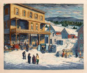 [Winter street scene with post office and general store]