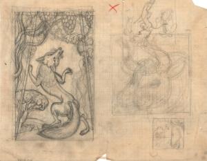 (3) untitled sketch (left side) fox and the grapes (right side) three other sketches