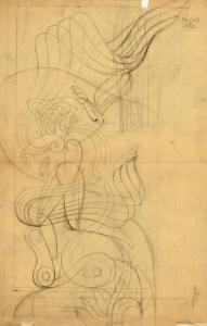 (66) untitled [sketch, Art Deco stylized figure with serpent]
