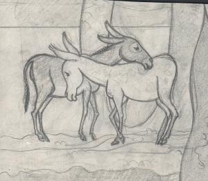 (122) untitled [sketch, elephant kicking donkey in the ass; verso upper right sketch of donkey foot]