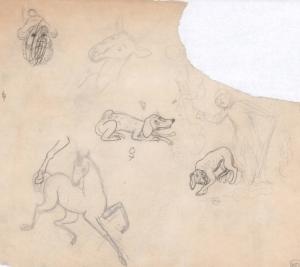 (134) untitled [two dogs being scolded and other sketches]