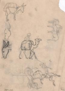 (138) untitled [various sketches, donkeys, camel with rider, horse and rider; verso 2 donkeys]