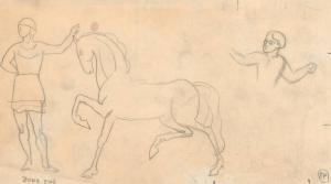 (148) untitled [sketch, horse and two figures]