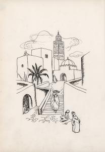 (154) untitled [sketch, Middle Eastern street scene]