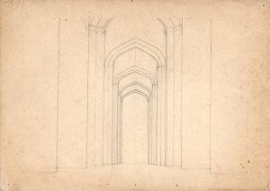 (156) untitled [architectural sketch of vaulted ceiling and arches]