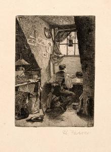 [Man sitting at artist's table]