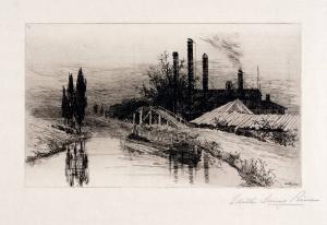 [Landscape with canal and factory chimneys]