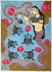 Skip to main content Collections MenuExpandMy CollectionDownload 300 x 300 (Download)View PDF[Snake Goddess]PreviousNext 300 x 300 (Download)[Snake Goddess]Artist Rambharos Jha (Indian)Datecirca 2010CultureIndian, MithilaGeographyBihar, IndiaClassificationsPaintingMediumAcrylic and inkDimensions27 1/2 × 19 5/8 in.Credit LineGift of Susan S. WadleyKeyword/SubjectflowersfigurelotusMithilaturtlessnakeObject number2017.0715 Discover More There are no works to discover for this record. Powered by eMuseum