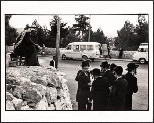 [Hasidic young men gathered outside, Jerusalem, Israel]