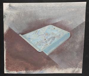 untitled [table/bench design, Sagittarius, constellations, planets on blue background]
