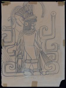 Mural in Low Relief on Main Wall of Lower Chamber, Temple of the Tigers, #2-13, Chichen Itza Yucatan