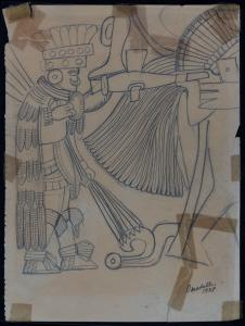Mural in Low Relief on Main Wall of Lower Chamber, Temple of the Tigers, #3-14, Chichen Itza Yucatan