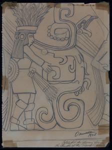 Detail #4, Mural in Low Relief on Main Wall of Lower Chamber, Temple of the Tigers, #4-15, Chichen Itza Yucatan