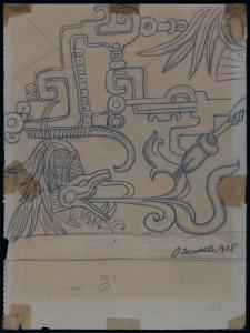 Detail #6, Mural in Low Relief on Main Wall of Lower Chamber, Temple of the Tigers, Chichen Itza Yucatan
