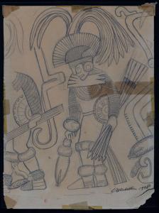 Detail #8, Mural in Low Relief on Main Wall of Lower Chamber, Temple of the Tigers, #8-19, Chichen Itza Yucatan