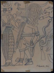 Mural in Low Relief on Main Wall of Lower Chamber, Temple of the Tigers, #9-21, Chichen Itza Yucatan