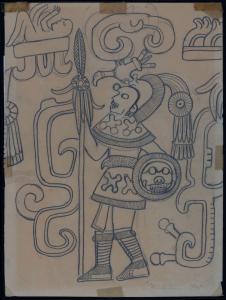 Mural in Low Relief on Main Wall of Lower Chamber, Temple of the Tigers, #32-33, Chichen Itza Yucatan