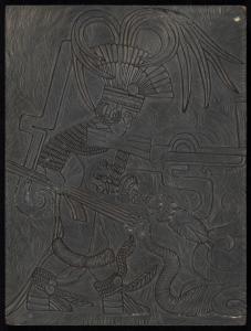 [Linoleum block for Mural in Low Relief on Main Wall of Lower Chamber, Temple of the Tigers, #18-7, Chichen Itza Yucatan]