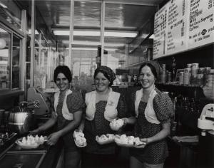 A banana split has one banana, three lumps of ice milk, crushed pineapple, strawberries, chocolate syrup and whipped cream. In two days of our forty-nine cent special, we sold five thousand splits. Businessmen want a pretty face at the counter and counter girls have personality to deal with the public.