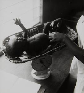 Underweight newborn on the scale (likely Ethiopia), Africa