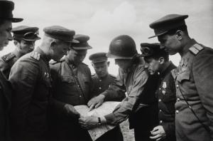 Soviet and Allied commanders meet near the Elbe River, April 1945