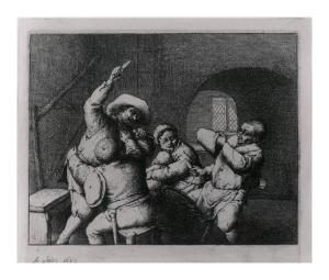 Skip to main content Collections MenuExpandMy CollectionDownload 300 x 300 (Download)View PDFLe Coup de CouteauPreviousNext 300 x 300 (Download)Le Coup de CouteauArtist Adriaen van Ostade (Dutch, 1610 - 1685)Date1653ClassificationsPrintMediumEtchingDimensions4 3/8 x 5 5/8 in.Credit LineGift of Mr. Cloud WamplerObject number1963.0897 Discover More Le Deux CommersAdriaen van Ostade17th centuryLes HarangueursAdriaen van Ostadecirca 1667Le CharcutierAdriaen van Ostadecirca 1650[Peasant with Pointed Cap]Adriaen van Ostade17th centuryLaughing PeasantAdriaen van Ostade17th centuryThe BarnAdriaen van Ostade1647[Small Bust of a Peasant Woman]Adriaen van Ostade17th centuryLa Poupee DemandeeAdriaen van Ostade1679Peasant with Hands Behind His BackAdriaen van Ostadecirca 1647Peasant with Hands in His CloakAdriaen van Ostade17th centuryLa FileuseAdriaen van Ostade1652The SchoolmasterAdriaen van Ostade1644 Powered by eMuseum