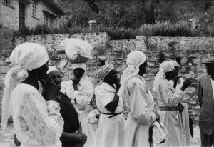 A favorite pastime of Haitian women is exchanging newsy tidbits of local gossip after Sunday Mass or on the way to market, Haiti