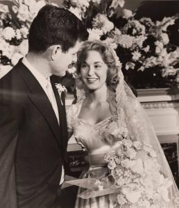 Ted Kennedy and Joan Bennett on their wedding day, New York, November 29, 1958
