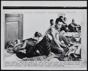 - Takeo, Cambodia: These are some of few survivors of detention area shooting Friday in which more than 100 Vietnamese were reported killed.