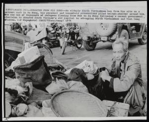 - Uprooted From His Home: An elderly South Vietnamese man from Hue sits on a street curb in Da Nang, his personal and household possessions piled helter-skelter around him. He was one of thousands of refugees fleeing from Hue to Da Nang following a recent government decision to abandon South Vietnam’s old capital to advancing North Vietnamese and Viet Cong forces, March 25, 1975