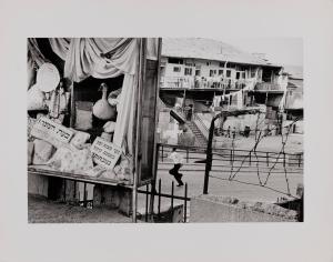 Street scene with boy running towards window display in Mea Shearim, the Hassidic Jewish quarter of the city of Jerusalem, 1968
