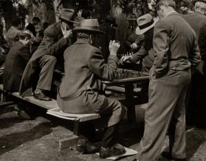 "The End Game" -- Elderly Men Playing Chess, Westlake-MacCarthur Park, Los Angeles, CA, 1950s