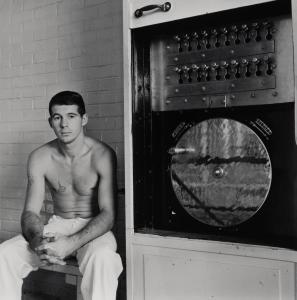 Young convict about to discharge a ten-year sentence. Apparatus to open cells
