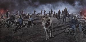 Savannah with Lion & Humans
