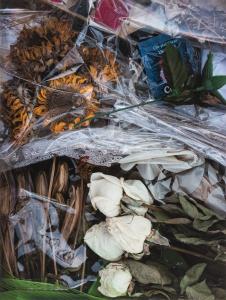 [Wilting white roses and sunflowers]